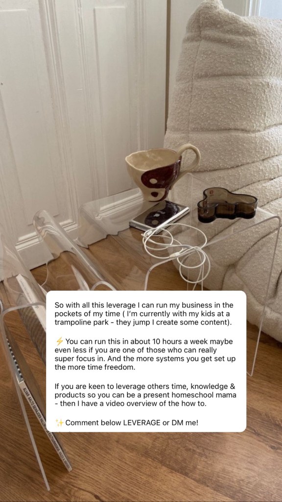 So with all this leverage I can run my business in the pockets of my time ( I’m currently with my kids at a trampoline park – they jump I create some content).